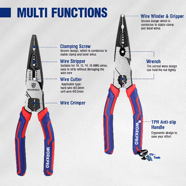 Workpro nebbtang med avisolerer, avbiter og krympetang